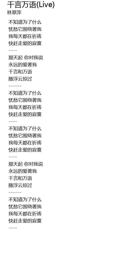 | [00:51.600] | qiān yán hé wàn yǔ |