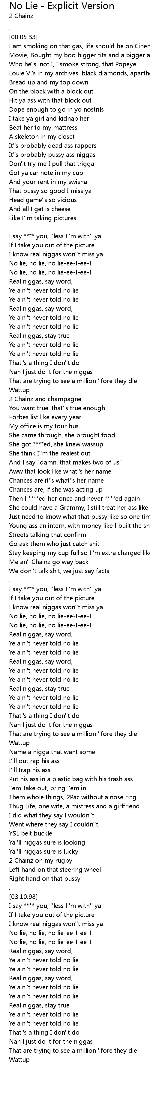 | [03:31.10] | Ye ain''t never told no lie |