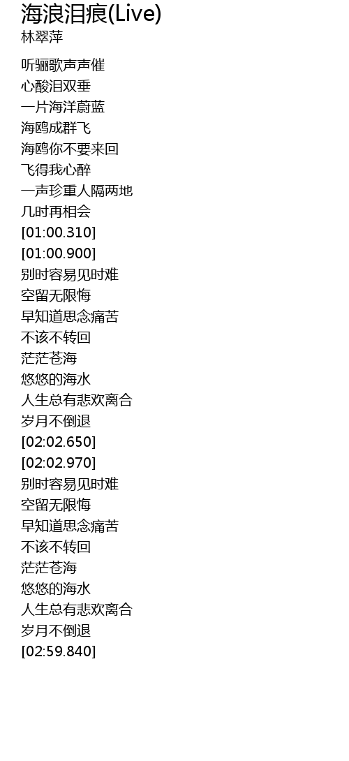 | [01:48.510] | yōu yōu de hǎi shuǐ |