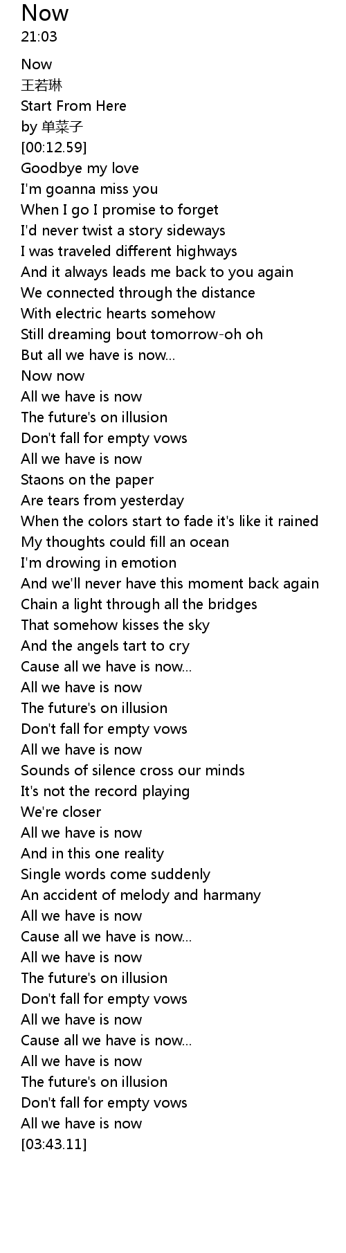 | [00:43.61] | Still dreaming bout tomorrow-oh oh |