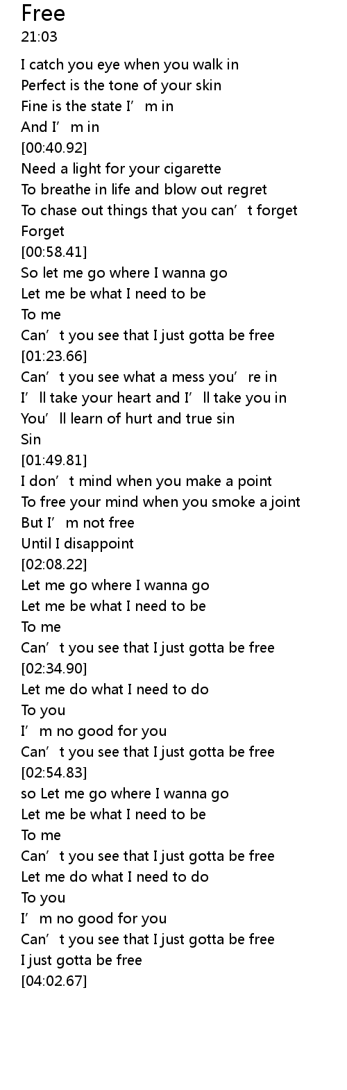 | [03:47.61] | Can' t you see that I just gotta be free |