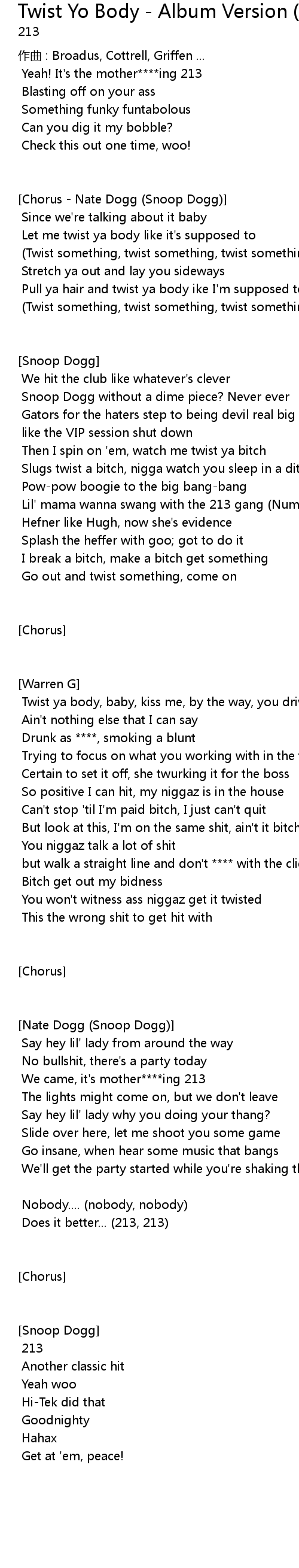 | Song | Twist Yo Body - Album Version (Explicit) |