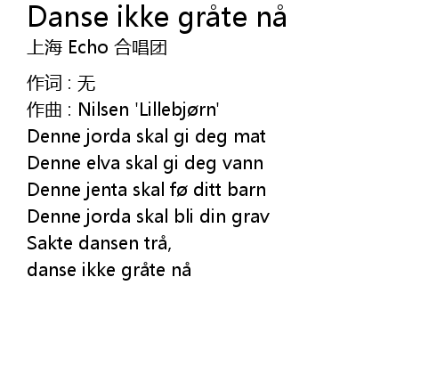 | Song | Danse ikke gråte nå |