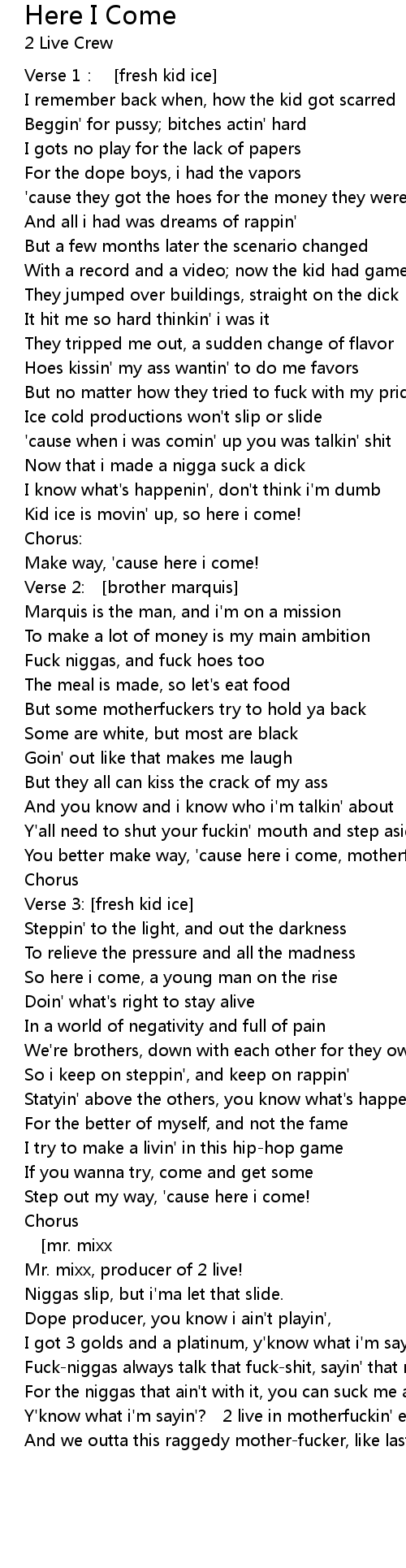 | Fuckniggas always talk that fuckshit, sayin' that mixx ain' t legit. | |
