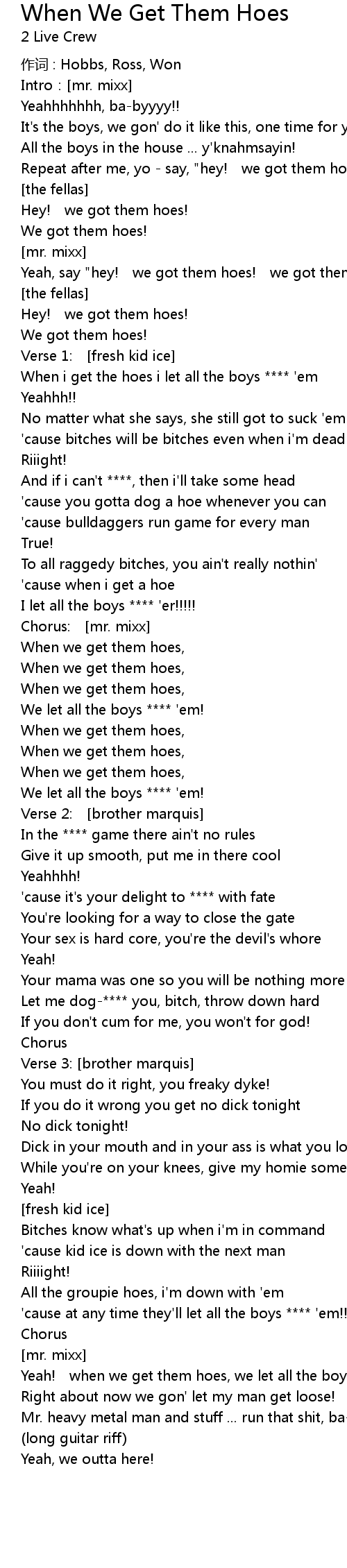 | Repeat after me, yo - say, "hey! we got them hoes! we got them hoes!" | |
