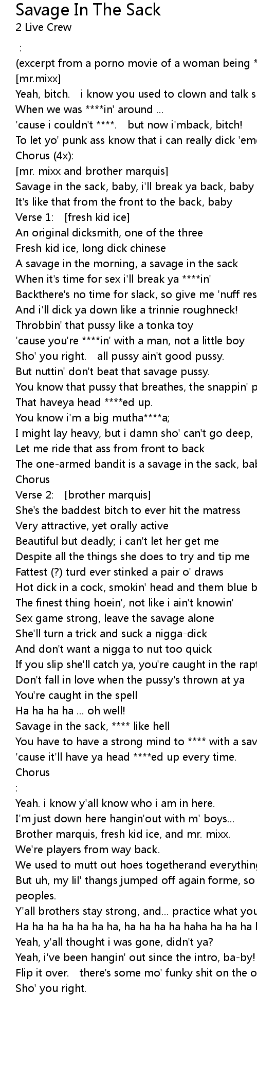 | Savage in the sack, baby, i' ll break ya back, baby | |
