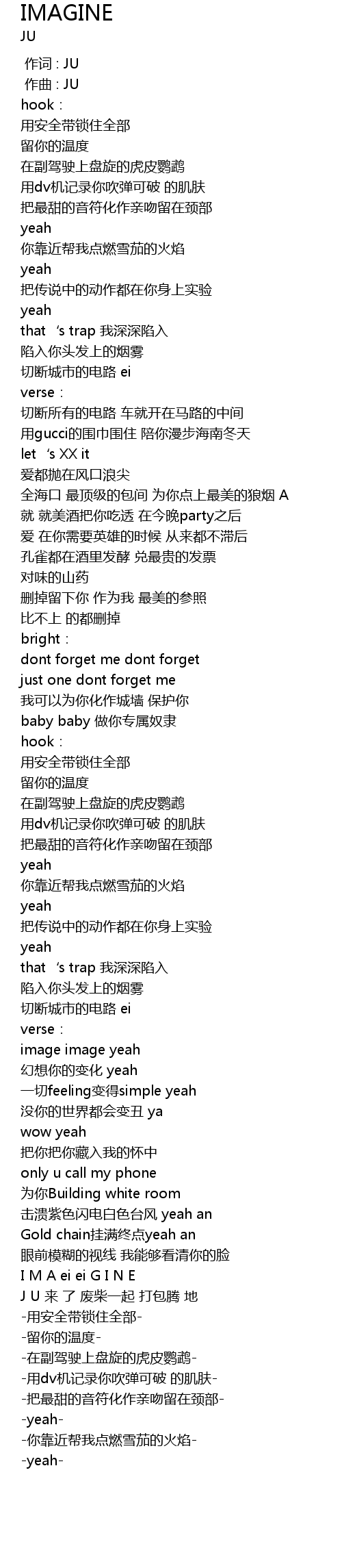 | [02:04.49] | huan xiang ni de bian hua yeah |