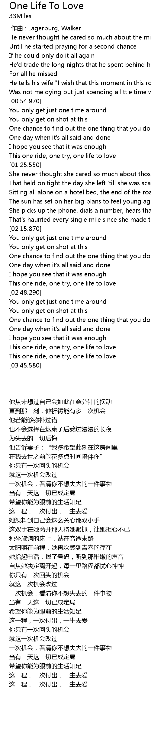 | [03:02.700] | One chance to find out the one thing that you don' t wanna miss |