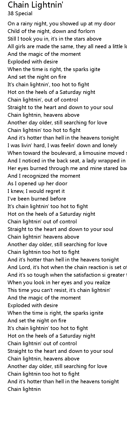 Chain lightnin' heavens above |