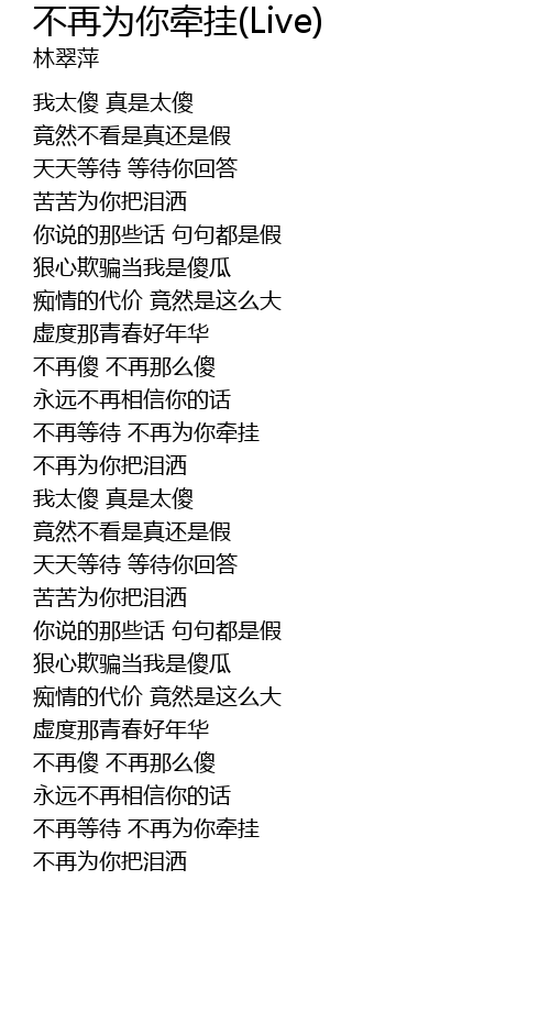 | [01:29.890] | 永远不再相信你的话 |