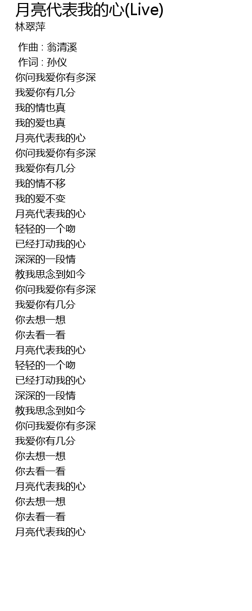 | [01:23.57] | 月亮代表我的心 |