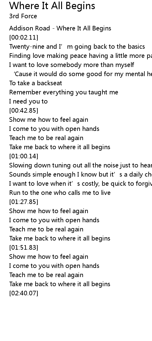 | [00:08.15] | Twentynine and I' m going back to the basics |