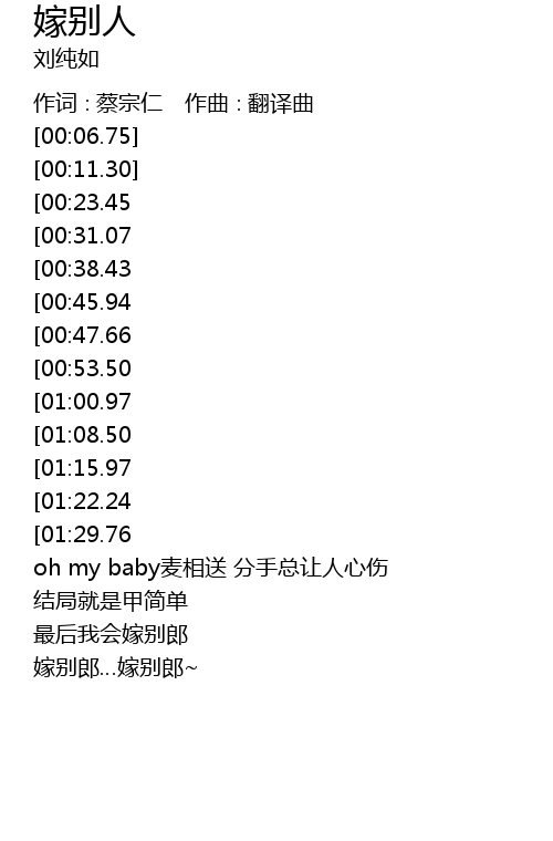| [03:21.50] | 嫁别郎…嫁别郎~ |
