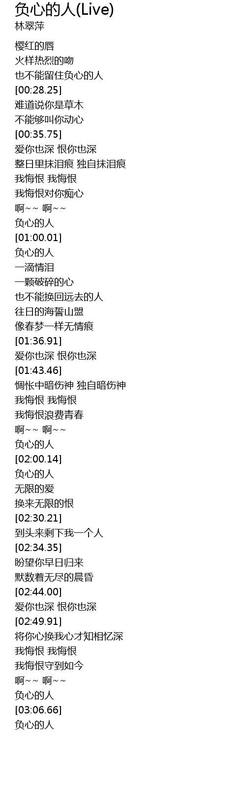 | [00:22.99] | yě bù néng liú zhù fù xīn de rén |