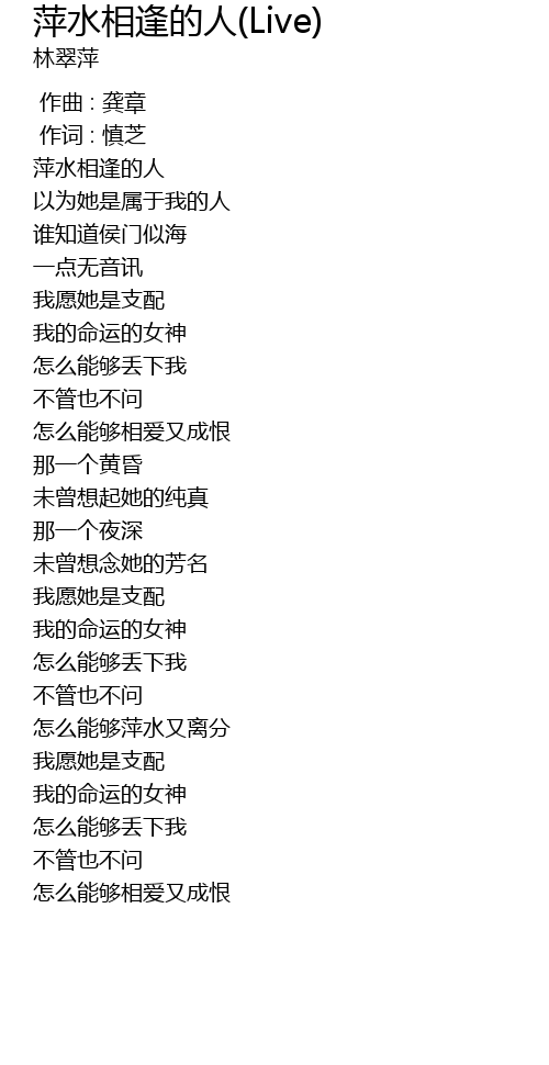 | Song | 萍水相逢的人(Live) |