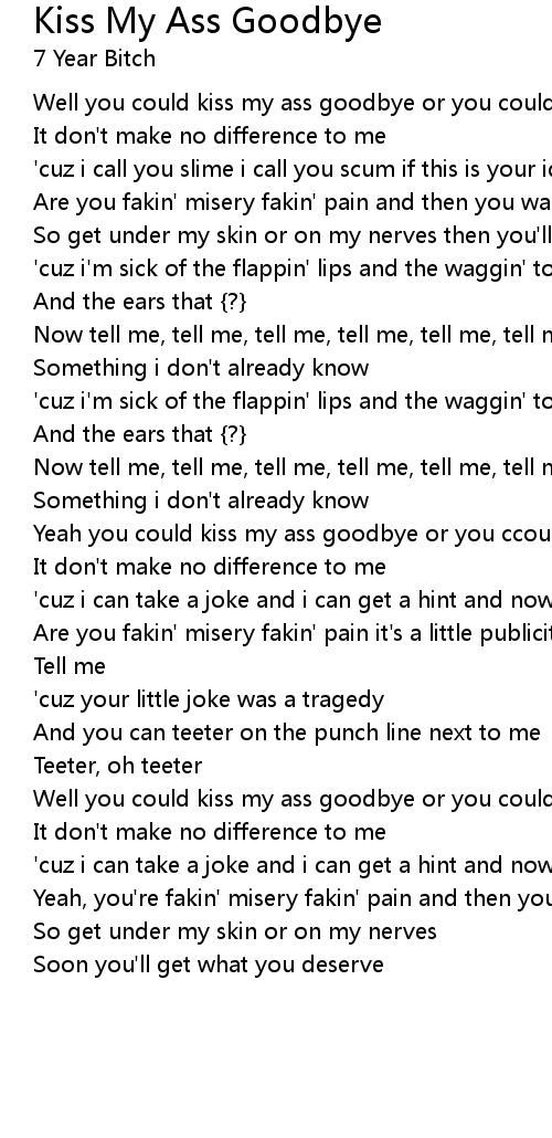 Yeah you could kiss my ass goodbye or you ccould sit and watch me cry |