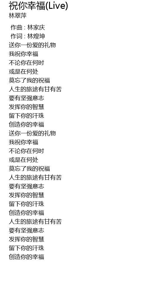 | [01:16.48] | wǒ zhù nǐ xìng fú |