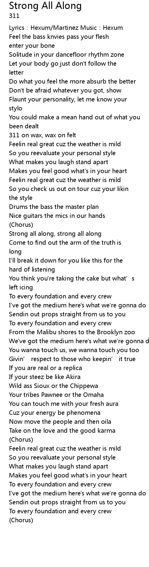 | Song | Strong All Along |