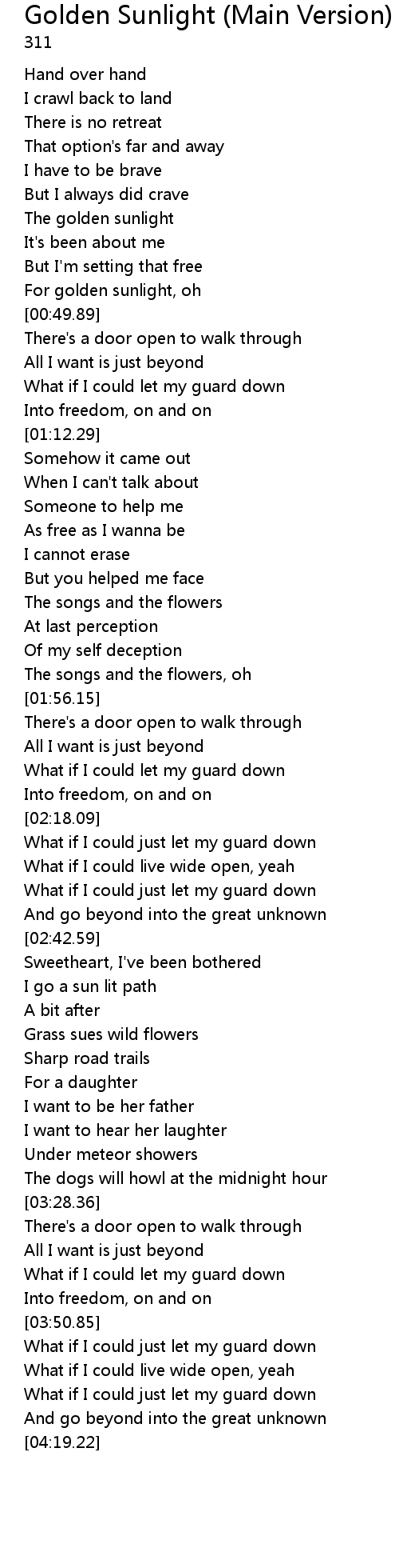 For golden sunlight, oh |