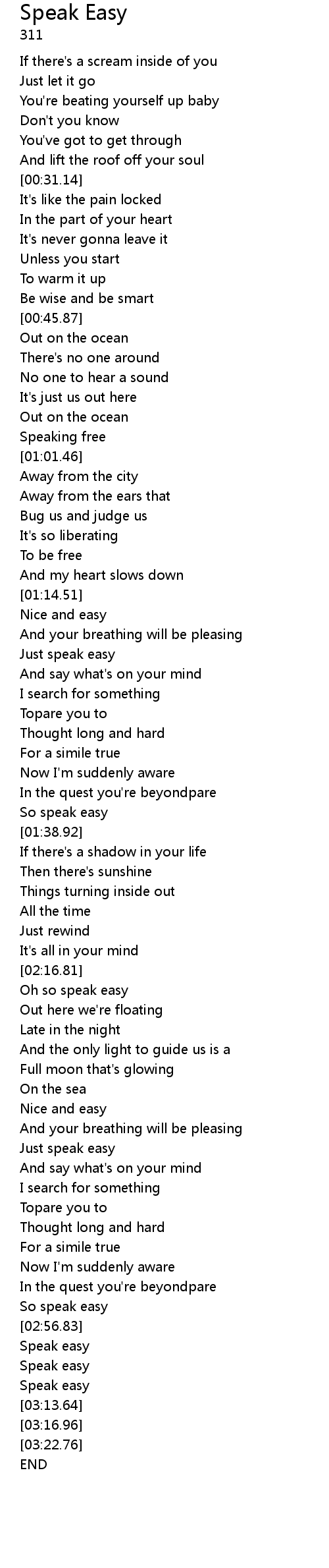[03:11.66] Speak easy