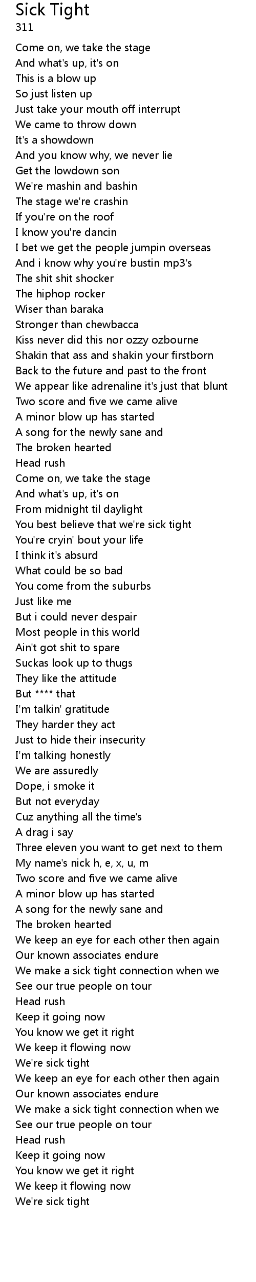 We're sick tight |