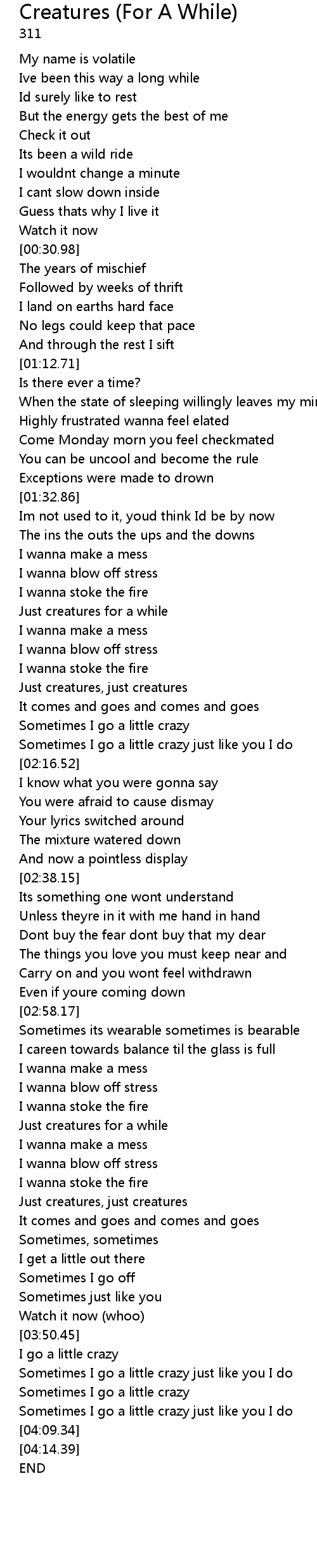 | [04:03.18] | Sometimes I go a little crazy just like you I do |
