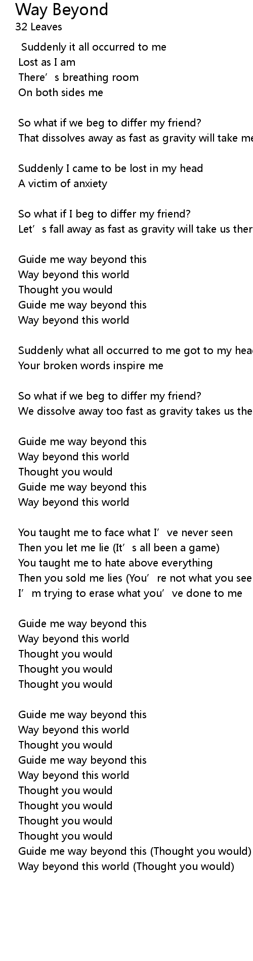 | Way beyond this world (Thought you would) |