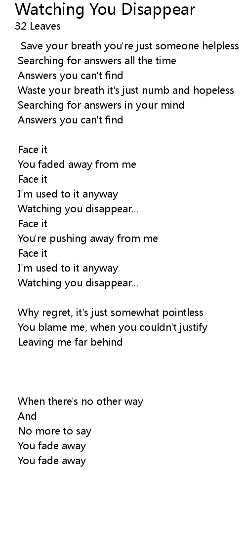 You fade away |