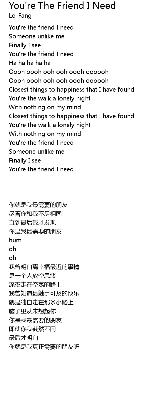 You're the friend I need |