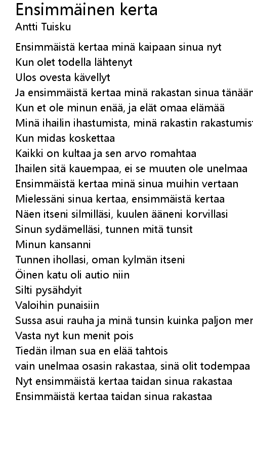| Ja ensimm ist kertaa min rakastan sinua t n n | |