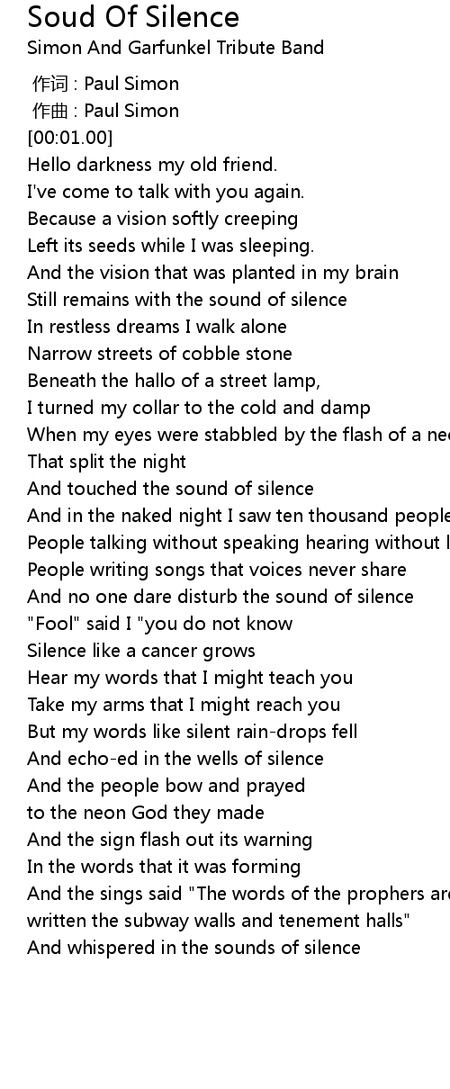 | [01:36.00] | And no one dare disturb the sound of silence |