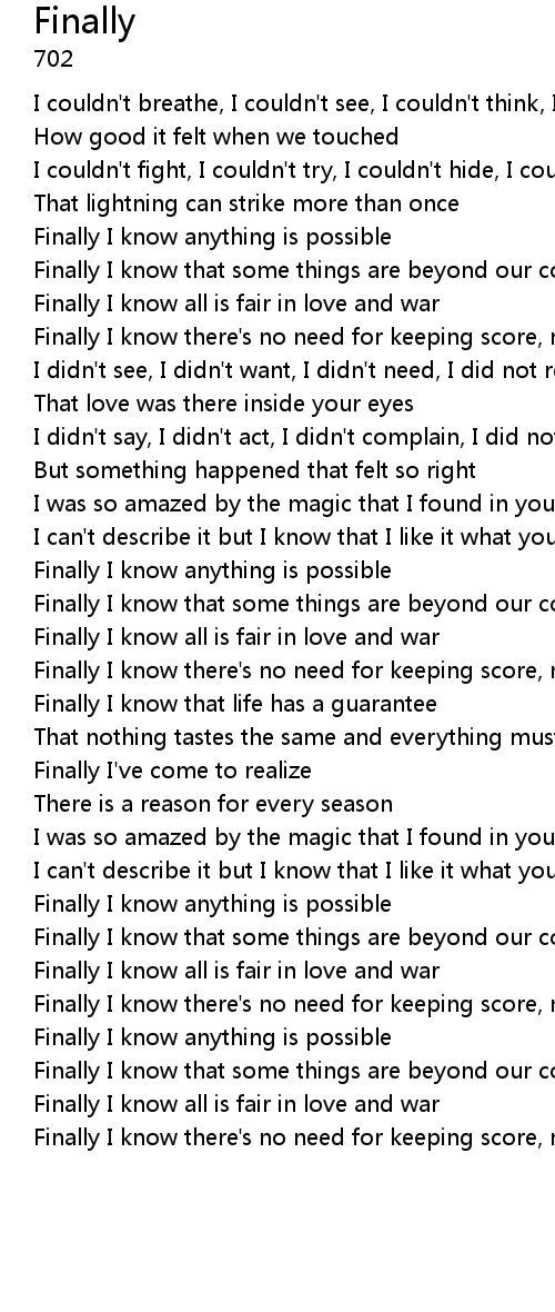 | Finally I know anything is possible | |