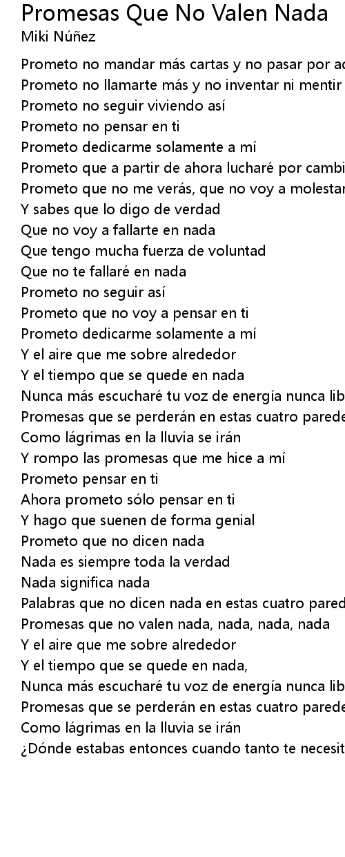 | [01:56.47] | Promesas que no valen nada, nada, nada, nada |