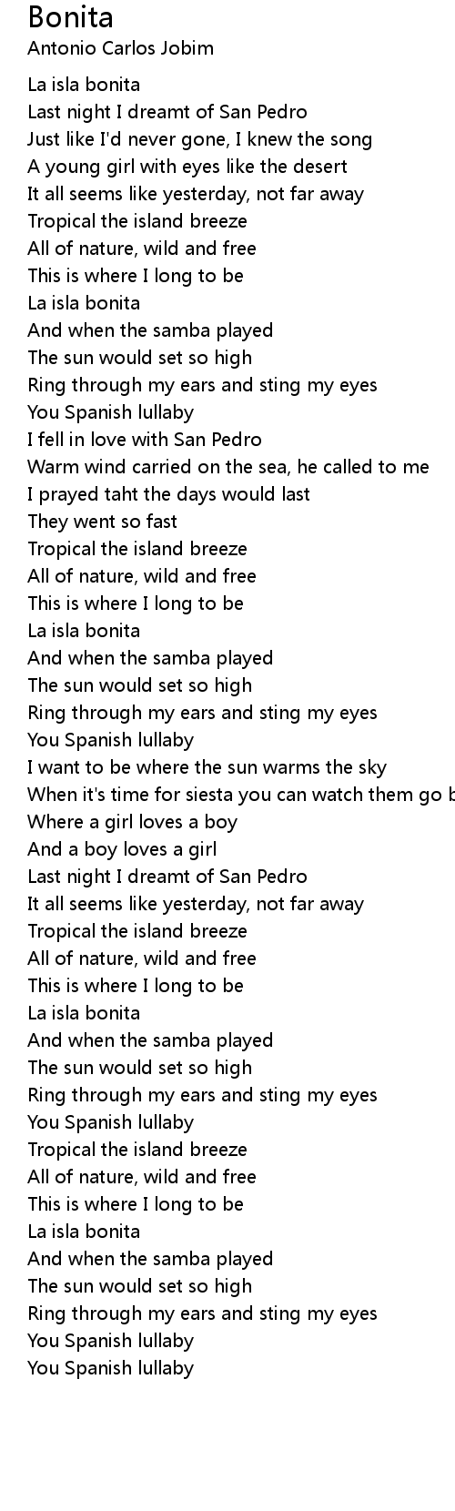 Bonita Lyrics