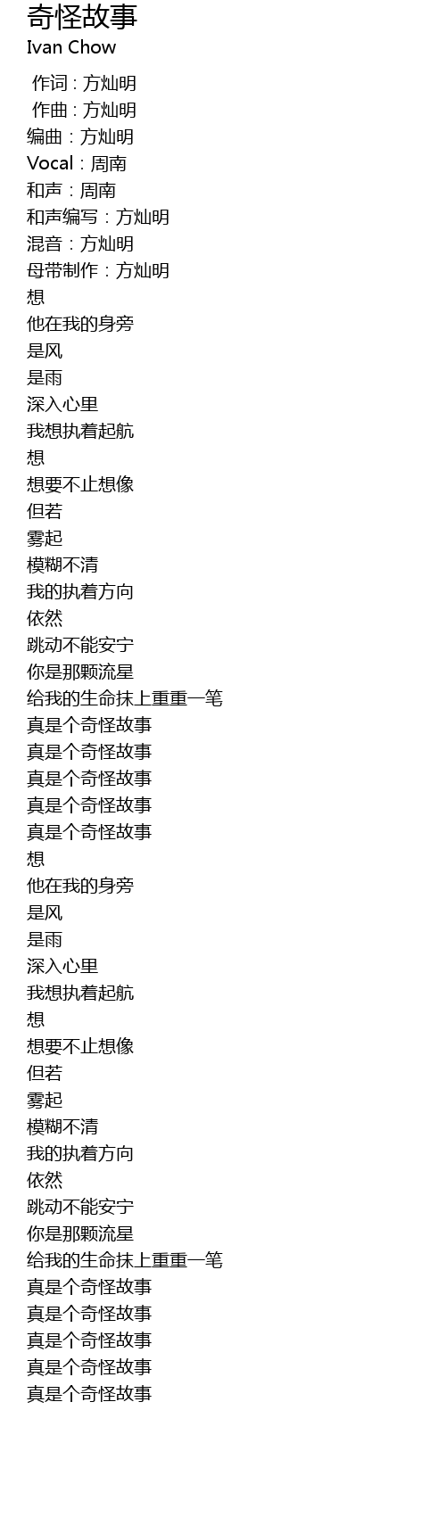| [02:32.458] | zhēn shì gè qí guài gù shì |