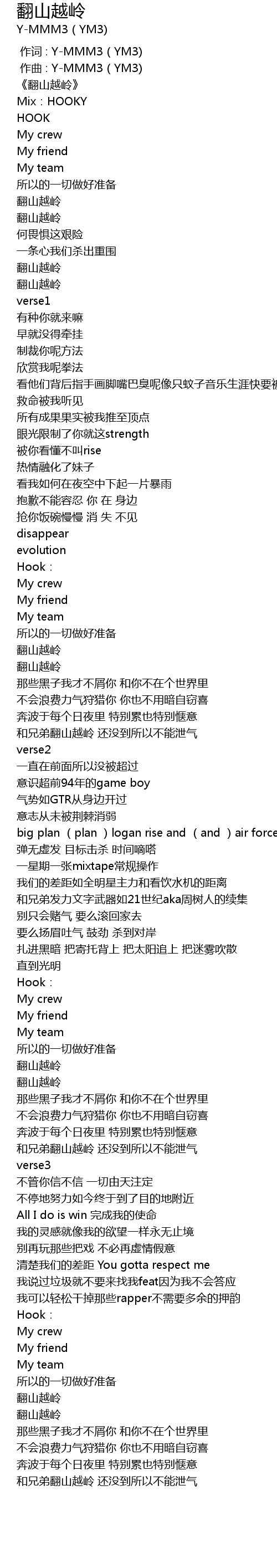 | Song | 翻山越岭 |