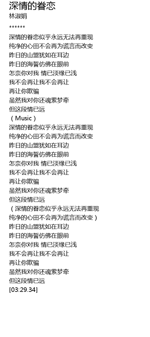 | [03:03.92] | 怎奈你对我 情已淡缘已浅 |