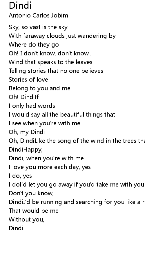 Oh, DindiLike the song of the wind in the trees that's how my heart is singing, |