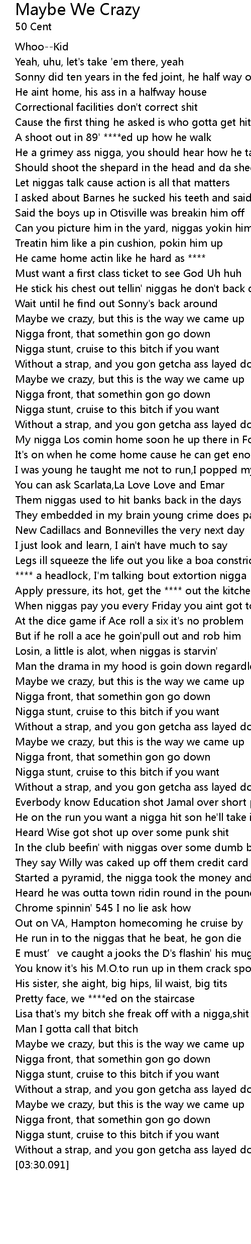 | [00:53.357] | He stick his chest out tellin' niggas he don' t back down |