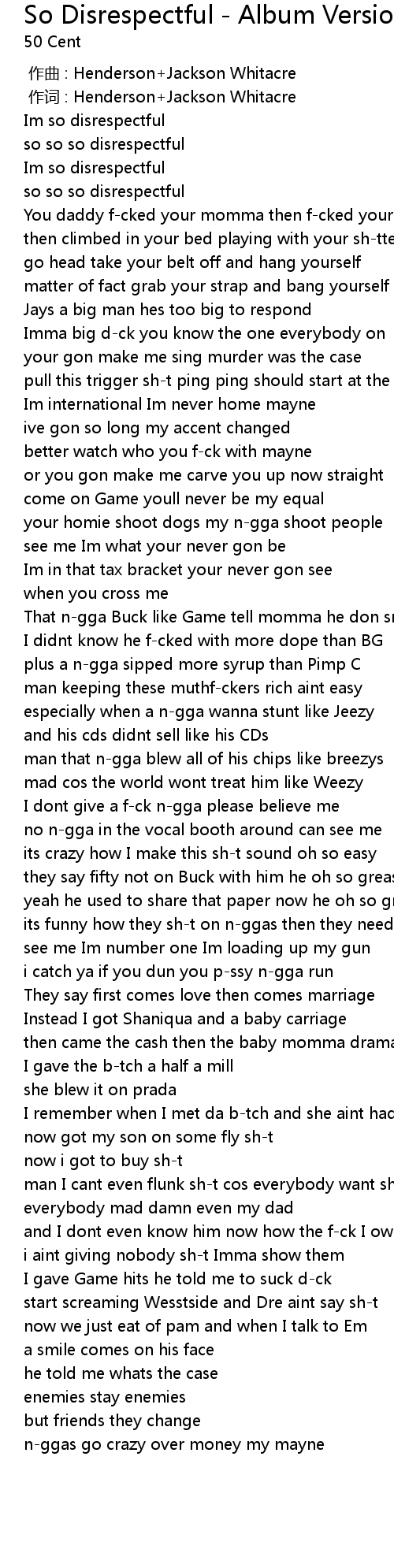 | [01:56.52] | its funny how they sh-t on n-ggas then they need me |