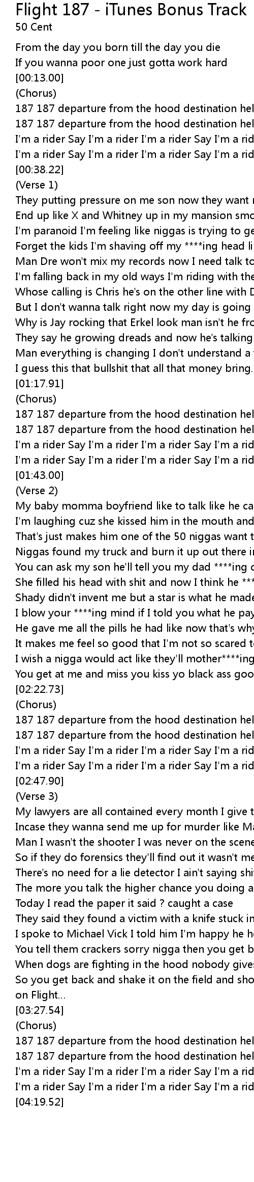 | [02:19.43] | You get at me and miss you kiss yo black ass goodbye. I'm on Flight… |