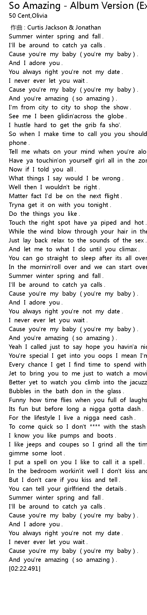 | [00:00.00] | 作曲 : Curtis Jackson & Jonathan |