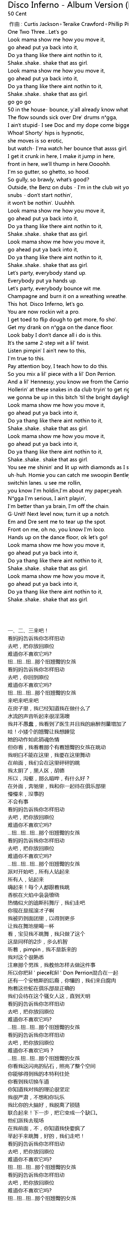 | [00:00.00] | 作曲 : Curtis Jackson+Teraike Crawford+Phillip Pitts |