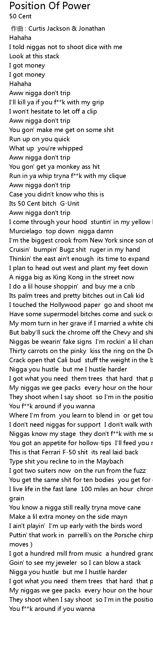 | [00:30.21] | Its 50 Cent bitch GUnit |