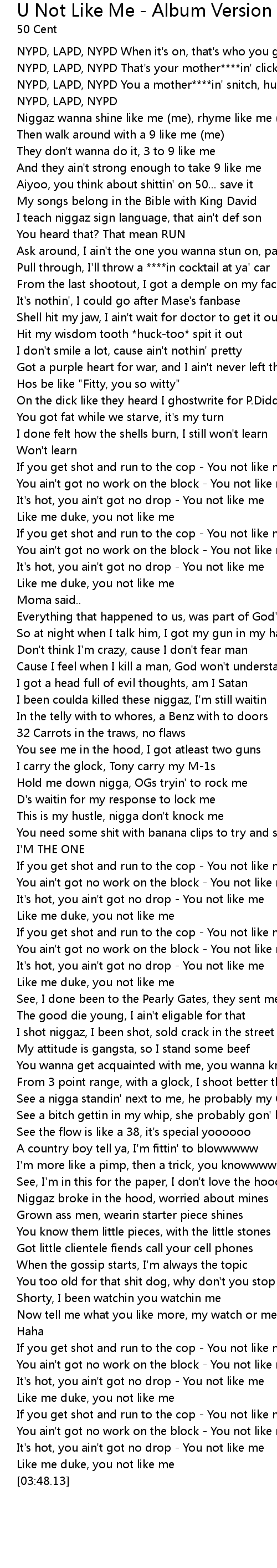 NYPD, LAPD, NYPD You a mother****in' snitch, huh? |