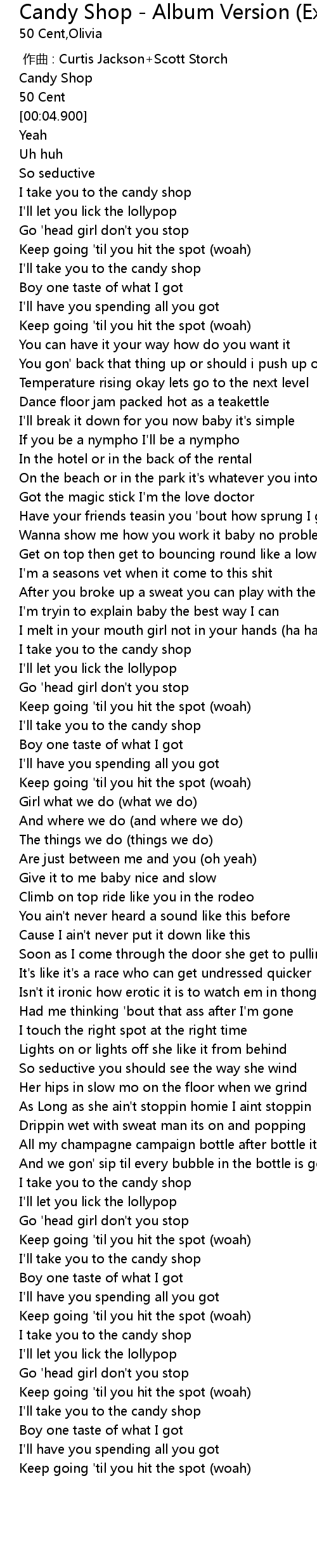 | [00:00.00] | 作曲 : Curtis Jackson+Scott Storch |