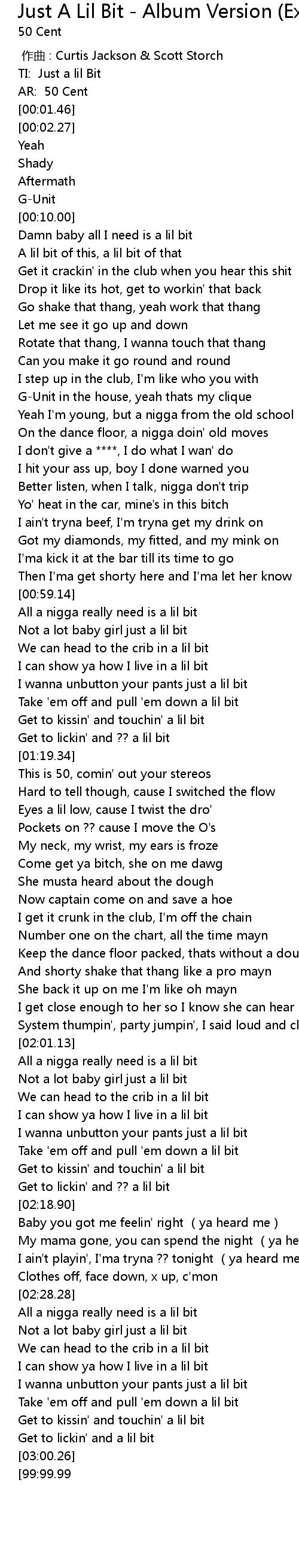 | [02:02.34] | Not a lot baby girl just a lil bit |
