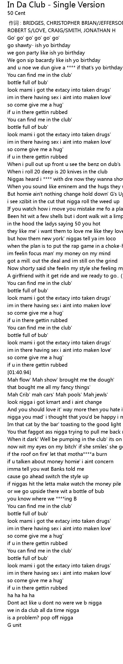 | [02:03.10] | When it dark' Well be pumping in the club' its on |