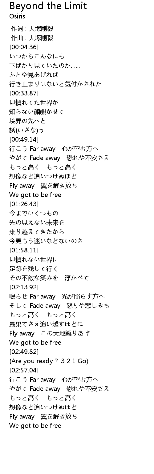 | [03:21.49] | 行こう Far away 心が望む方へ |