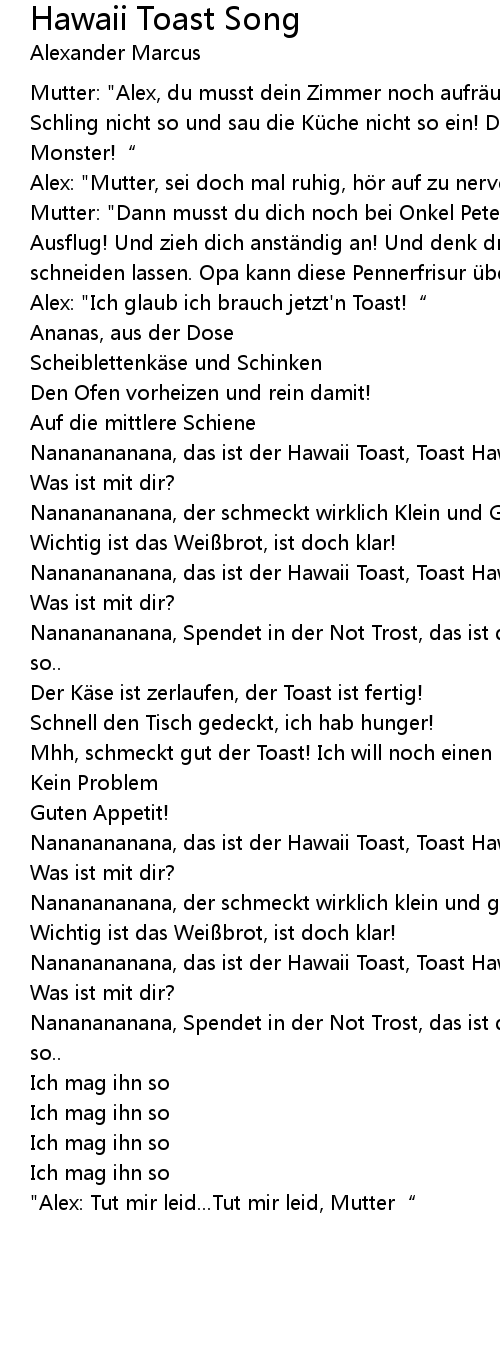 | Nananananana, Spendet in der Not Trost, das ist der Hawaii Toast! Den mag ich so.. | |